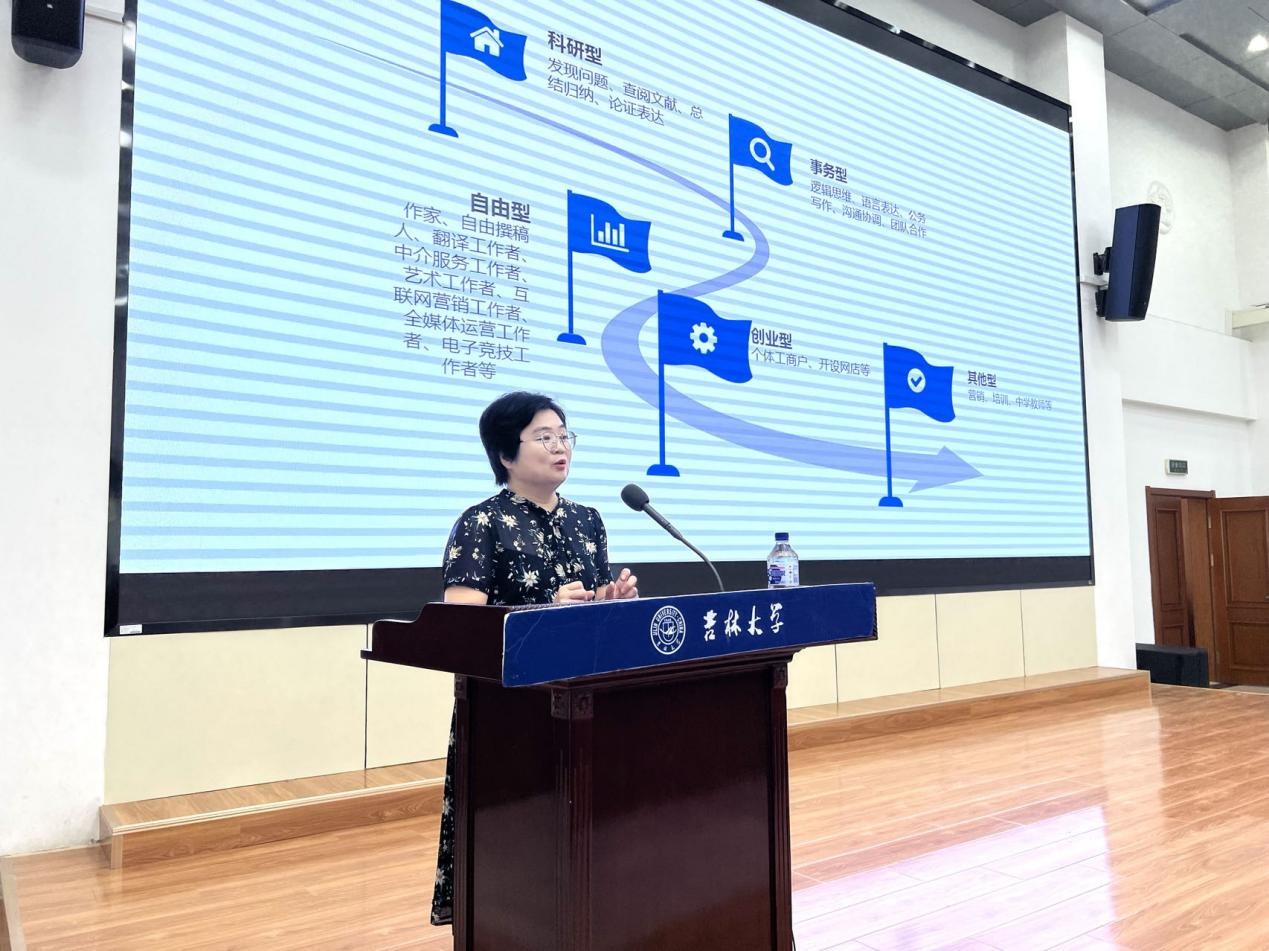 首先,赵洁老师讲述了在全新的就业形势下我院学生就业的优势与劣势,并就近三年的就业数据概况进行分析,她指出在职业规划和选择方面应当结合自身特点,积极面对新就业形势下的新挑战。此外,赵老师强调要树立底线思维,提高安全意识,希望同学们能做好文献积累,充实平安度过硕士生活。