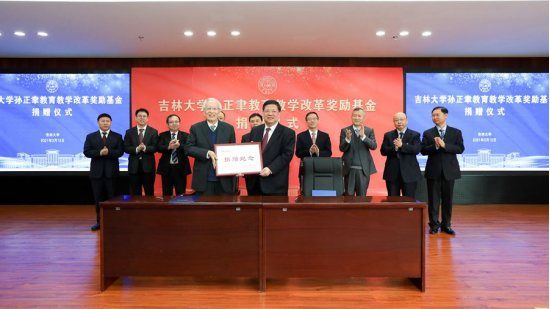 【文/张宏伟 摄/徐立华 张宏伟】正心精诚兴学育人,大爱情怀聿励后学。3月12日,吉林大学孙正聿教育教学改革奖励基金捐赠仪式在中心校区鼎新图书馆隆重举行。吉林大学哲学社会科学资深教授孙正聿将其获得的全国“杰出教学奖”100万元奖金全部捐赠给学校,设立“吉林大学孙正聿教育教学改革奖励基金”,专项用于奖励支持学校在教育教学改革研究和通识教育方面作出突出贡献的青年教师。校党委书记、学校教育基金会理事长姜治莹出席仪式并讲话。孙正聿教授给青年教师作了一场精彩报告。